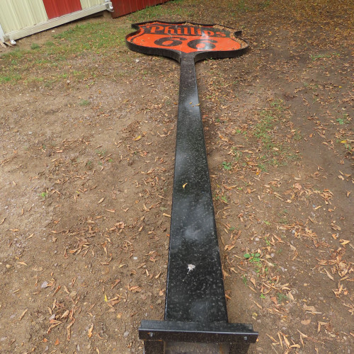 Lot #84E - Phillips 66 Double Sided Porcelain Sign in with Bracket and Pole
